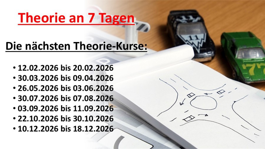 Nehmt euch an sieben aufeinander folgenden Werktagen von 18.00-21.00 Uhr Zeit und Ihr seid mit der Theorie fertig. Und Ihr habt alle 14 Lektionen gehört!